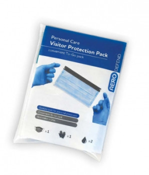 (2) Sanitizer Packs, (1) Mask, (2) Nitrile Powder Free Gloves.