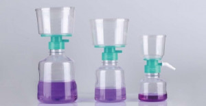 NEST Disposable Vacuum Filtration System is useful for large volume sample separation and sterilization for tissue culture media and other biological buffers. The units include PES or PVDF membrane filters with graduated filter tops made with polystyrene, and Acrylonitrile-Butadiene-Styrene necks with polystyrene receiving bottles. A separated sterile polyethylene cap is included. Filtration system is manufactured from raw material of high transparency polystyrene (PS) in three different volumes: 250mL / 500mL / 1000mL. They are available in three styles: complete filter/storage bottle systems, bottle top filters, and receiving bottles only.