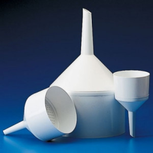 Molded of polypropylene, these funnels are unbreakable and resistant to corrosion and heat. Two piece construction allows top and bottom to be separated for easy cleaning. The funnels are fully autoclavable and feature excellent chemical resistance.