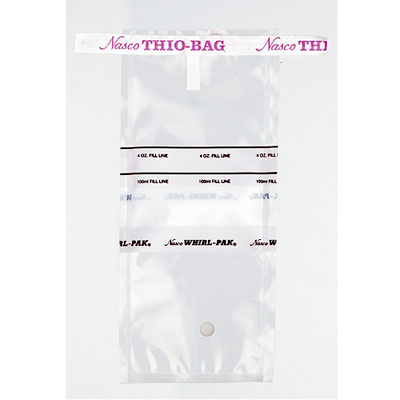 By NascoTransparent, disposable bags for liquid and solid samples. Sterile, made of polyethylene. Whirl-closed for an air and watertight fit. Tape and wire framing on top holds bag open for easy filling. Write-on bags have a strip for easy labelling. Thio-Bag® for water collection also available. Rack is sold separately.