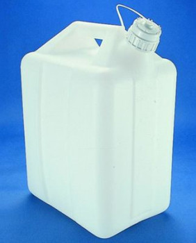 Nalgene™ Jerricans are an excellent choice for reagent storage. Constructed of high density polyethylene with tethered polypropylene closures, they feature a heavy rugged design with good chemical resistance. Wide stance and low center of gravity for greater stability. Integral spout is long enough for accurate pouring. Strap-fastened closure can't be lost. Graduations molded in liters and gallons. Recessed bottom provides second handgrip for pouring. Leakproof.