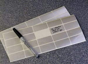Specifically designed for use at ultra-low temperatures. Cloth labels adhere to plastic and cardboard cryogenic storage boxes. Will not peel or shrink. Accept ballpoint pen. Ten sheets of labels. Twenty labels per sheet.