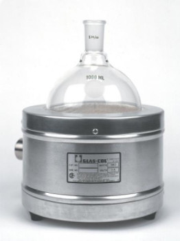 For high-wattage, high-temperature applications. Use in liquid-phase cracking in a flask, where products are taken out of the flask through a column, requiring more heat than distillation. Temperature limit 600°C. Cylindrical aluminum housing and resilient pliable interior for cradling glassware. Includes three-wire locking electrical connector and separable, 4' cord.