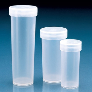 Polypropylene sample vials are available with snap-on caps (LDPE) or screw-on caps (PP).