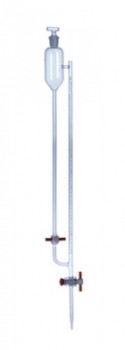 Kimax® precision bore buret with a side filling tube with a separate stopcock to control liquid within the permanently attached reservoir, approximately 70mL in capacity. Reservoir stopper is medium length ST 14/20. Stopcocks are ST 2. Scale is durable white ceramic enamel. Calibrated to the accuracy requirements found in ASTM Specification E694.