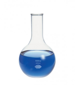 Kimax® flasks have a low coefficient of expansion to resist thermal shock. They are constructed with sturdy walls to minimize mechanical breakage, and reinforced tooled tops for strength and a secure stopper fit. Flat bottom. Designed from ASTM Specification E1403, Type I, Class 1, requirements.