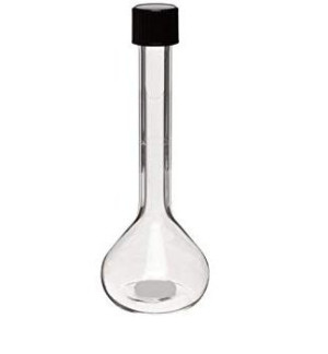 Pyrex® standard volumetric flasks conform to Class A capacity tolerances prescribed by ASTM. However, to facilitate transfer of crystals, salts and powders, the open end has been expanded on the 25mL and 50mL sizes. With flat bottom, threaded top and long neck. The standard phenolic 18-410 G.P.I. thread screw caps have a durable cone-shaped polyethylene liner. This Poly-seal cap insures a leak-resistant closure and no contamination when working with most common reagents.