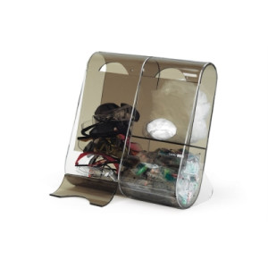 Unique three-in-one acrylic dispenser provides easy access to a variety of safety products. Organize your safety glasses, earplugs, and soft covers (including bouffant caps, beard covers, and shoe covers). Dispenser for soft covers has a simple cutout opening for easy product removal. Flip open top lid to easily fill dispenser; close to keep product dust-free. Tilt-open bottom lidstays in place during repeated use.