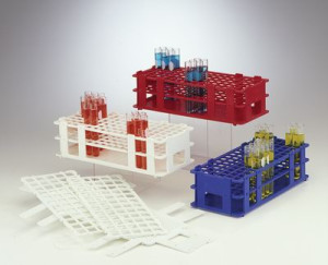 These submersible racks are molded of a special blend of autoclavable polypropylene. They will sink in a water bath and maintain their stability even in agitated water. No-Wire™ racks are also perfect for use outside the water bath, and meet the exacting needs of daily usage in the lab. Supplied in numerous hole sizes, the racks are available in three colors for safety and identification in the lab. Each rack features end plates for labeling as well as numbered and lettered rows for tube identification. Interlocking feet allow stacking of racks for storage. The grid form base has holes 2.16mm (0.085") square. Assembly takes only seconds with fold up sides and end bars that lock into rack tops. Outside dimensions are all the same at 246 x 104 x 64mm high (9.7" x 4.1"x 2.5").