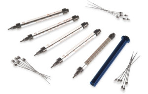 A convenient, economical package of six removable needle (RN) syringe assemblies and a universal handle which fits all six. The Multi-Pack contains three RN point style 2 needle packages (Cat.Nos.9-80427, 9-80428, 9-80728, three needles per package) suitable for most gas or liquid chromatographs. Syringes range in volume from 10 to 250mL, offering the broadest versatility for chromatographic applications. The Multi-Pack also contains one plunger washer, one RN nut and one stop assembly.