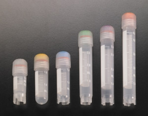 Designed for the storage of biological material, human or animal cells, at temperatures as low as -196 °C (but should be used only in the gas phase of liquid nitrogen). The cap features a long skirt for easy one-handed aseptic technique, a super fast thread design allowing removal with only 11/4 turn, and an inside thread design that will not contribute to possible contamination. This cap also features an exclusive silicone washer fitted inside the cap to ensure a positive seal at any temperature, even the lowest of cryogenic temperatures. The tubes are provided with a white marking area for sample identification and can be color coded by the use of a CAPINSERT™ (Series T312 for choice of available colors). T308-2 can be centrifuged up to 17,000g. Vials are sterilized by gamma radiation and are packaged in unique tamperproof, resealable safety-lock bags of 100.