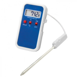Multi-point calibration on an individually-numbered Traceable® Certificate which assures accuracy from an ISO/IEC 17025:2005 (1750.01) calibration laboratory accredited by A2LA. It indicates traceability of measurements to the SI units through NIST or other recognized national measurement institutes (NMI) that are signatories to the CIPM Mutual Recognition Agreement. Easy-to-read digits are 3/8-inch-high. Stainless-steel probe (0.14-inch diameter x 7-inch length) is resistant to most chemicals. Cable (18-inch length) wraps into a slot around unit and probe clips to unit for easy storage. Size is 3 x 2 x 1/2 inches. Weight is 1 ounce. Supplied: Traceable® Certificate and 1-year silver-oxide battery. Replacement battery Cat. No. 291-1039.