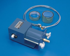 The Frigimat® Dry Ice Maker eliminates the need to buy large quantities of dry ice when only a little is needed. It employs the Joule-Thomson effect to produce a solid 454gm (16 oz) block of dry ice in one to two minutes. A brass relief valve safely vents excess gas. Removing the dry ice block requires just 30 seconds. Each chamber of liquid CO2 will make 8 or 9 blocks of dry ice, each measuring 8.5cm (3-3/8") x 11cm (4-3/8") long. Made of epoxy-coated steel with an aluminum ice chamber and brass valves with four non-skid rubber feet. Dimensions are 30x17x13cm (12"x 6-1/2"x 5") high. Shipping weight 5.5kg (12 lbs). Includes a 1.8m (6 ft) nickel plated copper connecting tube with standard GCA 320 (.830"-14) thread couplings for easy attachment to a LCO2 cylinder.