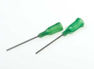 Non-sterile stainless steel needle with an inert plastic hub and a blunt end for safety.