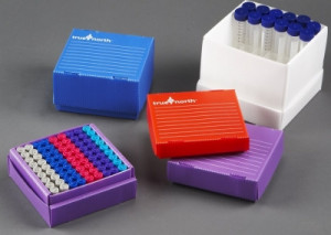 True North® cryo/freezer boxes by Heathrow Scientific were designed with sustainability in mind and are made from a specially formulated corrugated polypropylene. True North® freezer boxes are moisture resistant, which significantly reduces the chance of mold growth. With superior durability, polypropylene outlasts the cardboard box alternatives that are susceptible to softening and producing dust and can freeze (down to temperatures of -80°C) and thaw multiple times without a problem. When it comes to saving valuable lab space, True North® Flatpack Freezer Boxes are supplied "flat-packed", which eliminates the hassle of stacking and reduces the amount of space needed for test tube storage. When ready to use, assembly is easy and pre-assembled dividers are included with each box. True North® freezer boxes come complete in packs of 10, and multiple sizes and colors available.