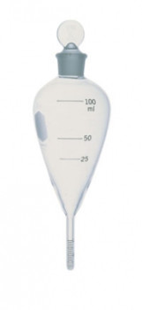 Kimax® tube used for the determination of small quantities of solids in large volumes of liquids. Calibrated to contain. Stem is graduated in 0.01mL to 0.2mL and the body has graduations at 25, 50, and 100mL. Recommended for the determination of free water and sediment in diesel and other distillate fuels, as a pass-fail indication of product quality (ASTM D2709). Durable black ceramic enamel scale. Do not centrifuge with stopper in tube.