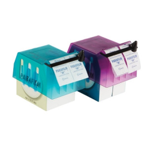 This dispenser accommodates two 50mm (2"), or one 100mm (4") Parafilm® M rolls and is simple to use—simply place the dispenser on top of the Parafilm® M box and pull the sealing film through, with no need to remove rolls from the packaging! A built in safety blade slides and cuts with no danger to fingertips and eliminates the need for scissors. Dispenser is supplied with two safety blades (additional replacement blades are available for purchase). Constructed of easy-to-clean ABS plastic.